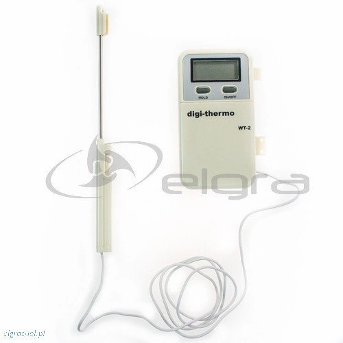 Elektroninen lämpömittari hälytyksellä ja pito-toiminnolla. Lämpötilaa mittaava termoelementti on pienikokoinen ja reagointi siksi nopeaa.